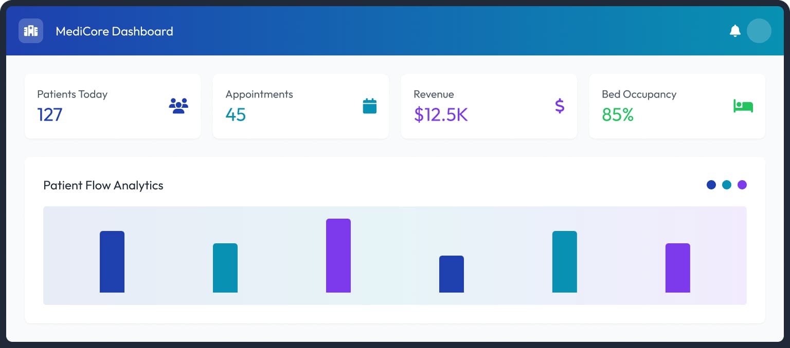 Automated scheduling, unified billing, and secure data access across departments through Medicore’s intelligent workflow engine.